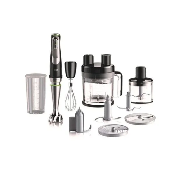 براون / خلاط يدوي مالتي كويك 9 / متعدد الألوان / 1200 وات / سكاكين من الستانلس ستيل / خاصية الخفق بالنبضات / إمكانية غسل أجزاء وملحقات الخلاط فى غسالة الأطباق بأمان / كوب معايرة سعة 600 مل / ملحق خفق من الستانلس ستيل / ملحق للأكل المهروس (البيوريه) / كبة سعة 500 مل / سكاكين تقطيع / سكينة لجرش الثلج / كبة 2 لتر (السعة التشغيلية 2 لتر- السعة القصوى 3.2 لتر) / سكينة تقطيع إلى شرائح / سكينة بشر / سكينة للتقطيع إلى شرائح رفيعة جوليان / سكينة لتقطيع البطاطس صوابع / ملحق للعجن